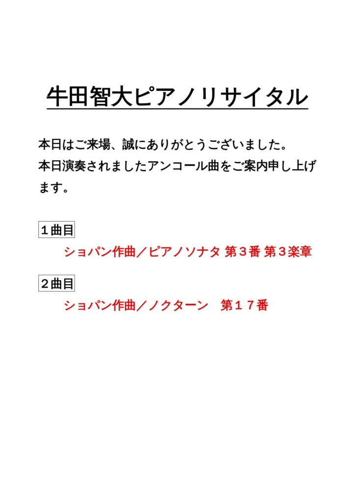 牛田智大 ピアノ・リサイタル